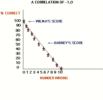 either +1.0 or -1.0. In either case, knowing a person's score on one variable,